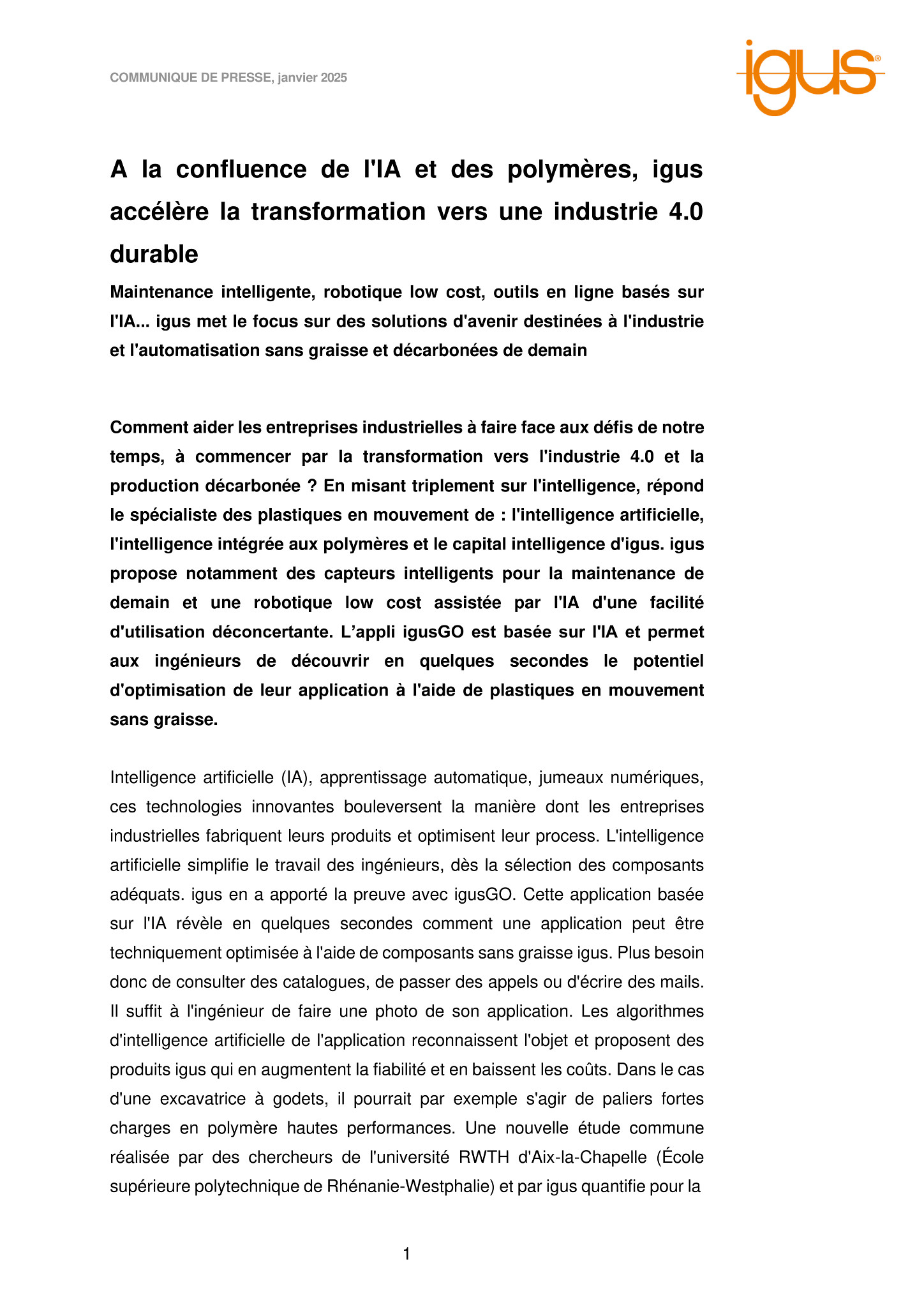 A la confluence de l’IA et des polymères, igus accélère la transformation vers une industrie 4.0 durable