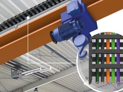 Le spécialiste des chaînes porte-câbles igus a présenté sur la foire de Hanovre sa nouvelle chaîne porte-câbles baptisée « glide-chain ». Elle est spécialement conçue pour les applications glissantes et convient parfaitement aux courses allant jusqu’à 30 mètres, comme on peut par exemple les trouver sur les grues de hangar. Son design épuré permet de réaliser des économies allant de 30 à 40 %.
