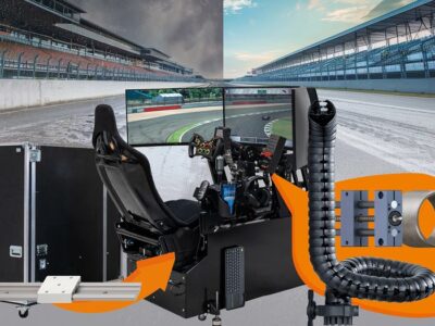Greaves 3D Engineering a mis au point un simulateur de bolide de course professionnel baptisé « The Ultimate Drivers Rig » qui se replie rapidement et se range dans un coffre de transport. Cela facilite considérablement le transport vers les circuits de course, les salons et les événements d’entreprise. Pour réduire l’entretien, les ingénieurs ont fait appel à des guidages et entraînements linéaires robustes et sans graisse, à des chaînes porte-câbles et à des paliers lisses igus.